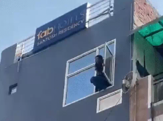दिल्ली। फर्श बाजार इलाके में शुक्रवार दोपहर 20 साल की एक युवती ने होटल की चौथी मंजिल से छलांग लगा दी। घटना का वीडियो सोशल मीडिया पर वायरल हो रहा है। वीडियो में देखा जा सकता है कि युवती होटल की खिड़की पर बैठी हुई थी और कुछ देर बाद उसने नीचे छलांग लगा दी। नीचे मौजूद लोगों ने पहले ही सड़क पर गत्ते बिछा दिए थे, जिस पर युवती गिर गई। हालांकि, वह गंभीर रूप से घायल हो गई और फिलहाल अस्पताल में उसका इलाज जारी है।