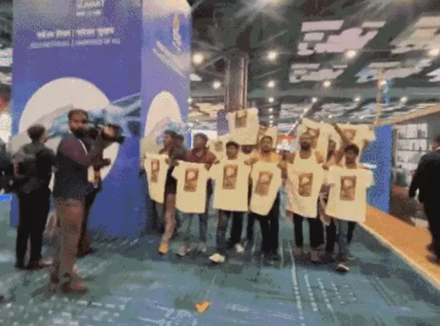 दिल्ली पुलिस के अनुसार प्रदर्शनकारियों ने ऑनलाइन रजिस्ट्रेशन कर क्यूआर कोड के जरिए समिट में प्रवेश किया था। उन्होंने ऊपर स्वेटर और जैकेट पहनी हुई थी और अंदर विरोध संदेश वाली टी-शर्ट। हॉल नंबर 5 के पास उन्होंने जैकेट उतारकर प्रदर्शन शुरू किया। पुलिस ने झड़प और सुरक्षा नियमों के उल्लंघन के आरोप भी लगाए हैं।
