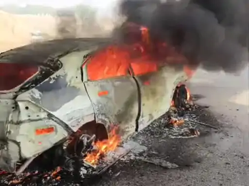 चलती कार बनी आग का गोला: पुलिसकर्मी ने कूदकर बचाई जान, नई गाड़ी जलकर खाक