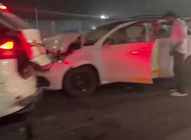 गुरुग्राम। द्वारका एक्सप्रेसवे पर देर रात एक इनोवा और स्विफ्ट डिजायर टैक्सी कार की टक्कर में दोनों वाहन बुरी तरह क्षतिग्रस्त हो गए। हादसा एक्सप्रेसवे की एक ही साइड पर हुआ। इनोवा आगे चल रही थी, जबकि स्विफ्ट डिजायर पीछे से आ रही थी।