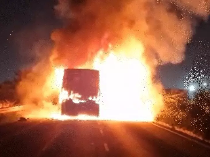 इंदौर-पुणे बस हादसा: कंटेनर से टक्कर के बाद लगी आग, 8 घायल