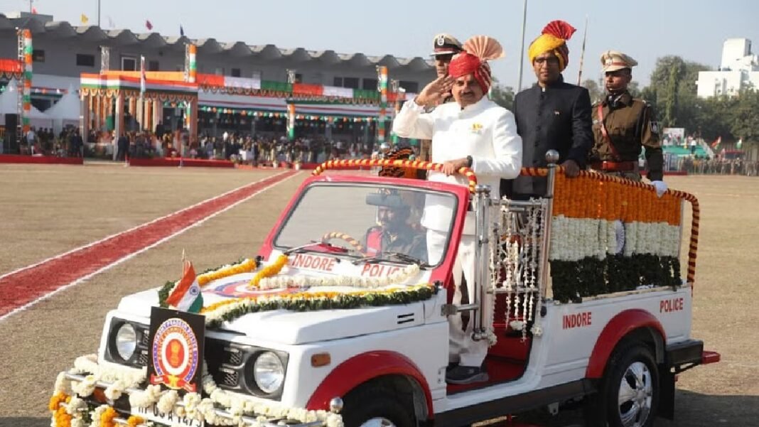इन्दौर। 76वें गणतंत्र दिवस के अवसर पर मुख्यमंत्री डॉ. मोहन यादव ने इंदौर में तिरंगा फहराया। प्रदेशभर में देशभक्ति और उल्लास का माहौल देखने को मिला। मध्यप्रदेश में आज 76वां गणतंत्र दिवस पूरे जोश और उल्लास के साथ मनाया गया। प्रदेश के मुख्यमंत्री डॉ. मोहन यादव ने इंदौर के नेहरू स्टेडियम में सुबह 9 बजे तिरंगा फहराया और राष्ट्रगान के बाद खुले जीप में सवार होकर भव्य परेड की सलामी ली। इस दौरान सीएम के साथ कलेक्टर आशीष सिंह भी मौजूद रहे। गणतंत्र दिवस के मौके पर इंदौर की सभी विरासतों और प्रमुख स्थलों को सजाया गया है। कल रात से ही रंगबिरंगी जगमग रोशनियों से राजबाड़ा, गांधी हाल आदि प्रमुख स्थानों को सजाया गया है। स्कूलों में बच्चे सुबह से गणतंत्र दिवस के कार्यक्रम के लिए पहुंचने लगे। विभिन्न संस्थाओं और संगठनों ने भी अपने अपने स्तर पर गणतंत्र दिवस के लिए विशेष आयोजन रखे।