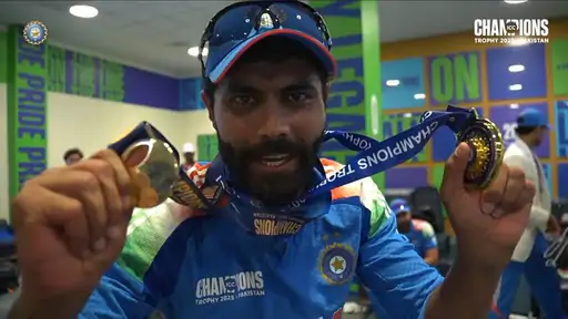 चैंपियंस ट्रॉफी के फाइनल में न्यूजीलैंड के खिलाफ शानदार प्रदर्शन करने पर टीम इंडिया ने रवींद्र जडेजा को बेस्ट फील्डर का मेडल दिया। टीम के ड्रेसिंग रूम में फील्डिंग कोच टी दिलीप ने उन्हें यह सम्मान प्रदान किया। जडेजा ने गेंदबाजी में 10 ओवर में 30 रन देकर एक विकेट लिया, जबकि बल्लेबाजी में 9 रन बनाकर नाबाद रहे।