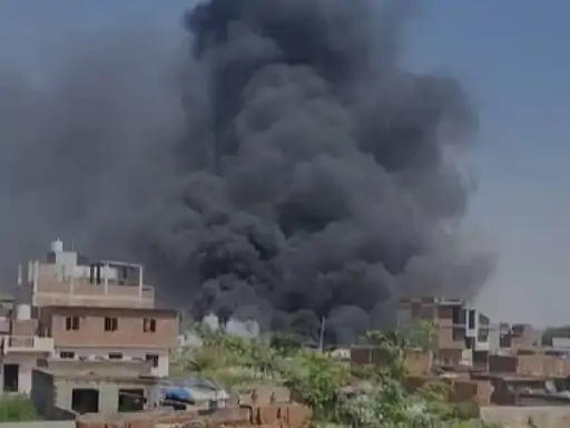 नोएडा में कबाड़ गोदाम में भीषण आग, काले धुएं से मची अफरा-तफरी