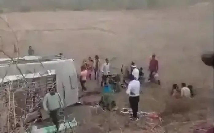 यात्रियों से भरी बस पलटी, बीस घायल चार की हालत गंभीर
