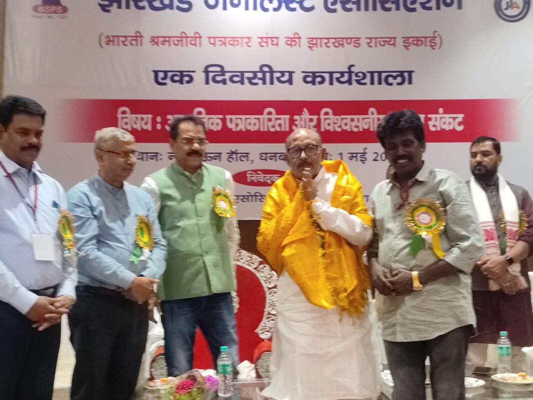 धनबाद। देश के जाने माने भारती श्रमजीवी पत्रकार संघ लगातार पत्रकारों के लिए संघर्ष करता आ रहा है। इसी कड़ी में भारती श्रमजीवी पत्रकार संघ की झारखंड राज्य इकाई झारखंड जर्नलिस्ट एसोसिएशन ने मजदूर दिवस पर एक सम्मेलन का आयोजन किया। इस सम्मेलन में देश की राजधानी दिल्ली समेत पूरे देश से पत्रकारों ने भाग लिया। मुख्य अतिथि के रुप में झारखंड विधानसभा अध्यक्ष रवींद्र नाथ महतो जबकी सम्मानित अतिथि के रुप में झामुमो के वरिष्ठ विधायक मथुरा महतो एवं भाजपा विधायक किशुन दास शामिल हुए। सम्मेलन को संबोधित करते हुए झारखंड विधानसभा अध्यक्ष रवींद्र नाथ महतो ने कहा कि, पत्रकारों को विश्वसनीयता बनाकर रखनी चाहिए, आप लोकतंत्र के प्रहरी के रुप में होते हैं इसलिए पत्रकारों को लोकतंत्र का चैथा स्तंभ कहा जाता है। वहीं झामुमो के सचेतक वरिष्ठ विधायक मथुरा प्रसाद महतो ने कहा कि ,नेता हो या पत्रकार, सभी को संयमित रहना चाहिए। श्री महतो अप्रत्यक्ष रूप से पिछले दिनों एक न्यूज चैनल के निदेशक को जेल भेजे जानें की घटना को लेकर अपनी प्रतिक्रिया दे रहे थे। कार्यक्रम में सिमरिया से भाजपा विधायक किशुन दास ने कहा कि वे पत्रकार हितों के लिए सदैव अग्रिम पंक्ति में आवाज बुलंद करने वाला संगठन झारखंड जर्नलिस्ट एसोसिएशन के साथ खड़े रहते हैं। पत्रकार सुरक्षा कानून समय की मांग है और वे आगामी विधान सभा में इसे प्रश्नकाल में मजबूती से उठायेंगे। उन्हों ने पत्रकारों के लिए जेजेए चतरा जिला इकाई को एंबुलेंस देने की भी घोषणा की। वहीं झारखंड जर्नलिस्ट एसोसिएशन के प्रदेश उपाध्यक्ष कुमार कौशलेंद्र ने विस्तार से जानकारी दी,पत्रकारिता की गरिमा बनाए रखने एवं डिजीटल मिडिया के लिए कोड ऑफ कंडक्ट की बात कही। जेजेए के कार्यकारी अध्यक्ष अमरकांत ने झारखंड में संगठन के आगामी कार्यक्रमों की जानकारी दी, उन्हों ने कहा कि जेजेए ने पत्रकार संगठनों की भीड़ में अपनी कार्यशैली से अपनी अलग पहचान बनाई है। कोरोनकाल के उपरांत लगभग आर्थिक संकट से जूझ रहे पत्रकारों, गंभीर रूप से बीमार पत्रकारों एवं उनके परिजनों की सहायता की है। दिवंगत पत्रकार चंदन तिवारी की पत्नी को नौकरी का मामला हो या फिर बेकसूर पत्रकार की गिरफृतारी का मामला सभी मामलों का निपटारा जेजेए ने किया है। नई दिल्ली से आए भारती श्रमजीवी पत्रकार संघ के राष्ट्रीय अध्यक्ष संजय सिंह ने अपने एसोसिएशन के बारे में कहा कि ,पत्रकार हित में यह संगठन लगातार संघर्षरत रही है। अलग-अलग राज्यों में पत्रकार इनके सिद्धांतों को समझकर एकजुट हुए है और आज यह 22000 पत्रकारों के साथ दक्षिण एशिया का सबसे बड़ा पत्रकार संगठन होने का गौरव प्राप्त कर चुका है। श्री सिंह ने कहा कि पत्रकारों की एकजुटता और अनु