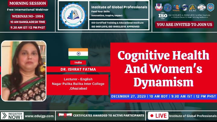 दुनिया भर के देशों में महिलाओं के सशक्तिकरण के लिए वेबिनार का आयोजन, भारत से प्रतिनिधि के तौर पर डॉक्टर इशरत फात्मा ने हिस्सा लिया