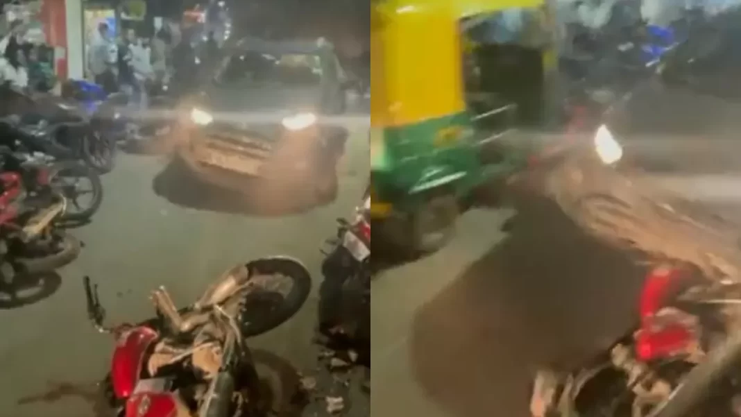 नई दिल्ली। दिल्ली के वजीराबाद इलाके में कार चालक ने कई लोगों को टक्कर मार दी। इसमें कई लोगों को चोट आई है। गुस्साई भीड़ ने कार चालक को पकड़ लिया और उसकी जमकर पिटाई कर दी। जिसके बाद उसे पुलिस के हवाले कर दिया। फिलहाल पुलिस मामले की जांच में जुट गई है। इस घटना का एक वीडियो भी सोशल मीडिया पर वायरल रहा है, जिसमें आरोपित अपनी कार से बाइक को रौंदता हुआ नजर आ रहा है। सोशल मीडिया पर वायरल हो रही इस वीडियो में देखा जा सकता है कि आरोपित व्यक्ति अपनी कार से वहां खड़ी बाइकों को बुरी तरह से रौंद रहा है और लोग उसे अपनी जान बचाते हुए दिख रहे हैं। घटना की जानकारी मिलते ही पुलिस ने मौके पर पहुंचकर आरोपित को हिरासत में ले लिया है।