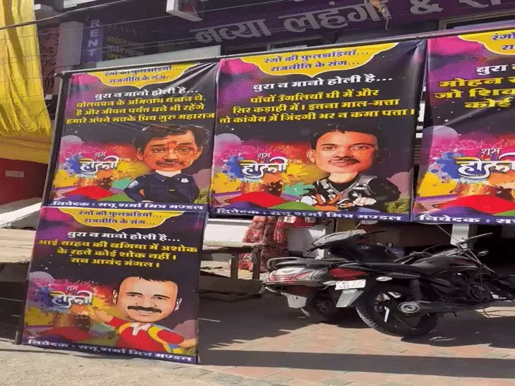 इंदौर में रंग पंचमी पर सजी राजनीति की होली, पोस्टरों के जरिए नेताओं पर तंज