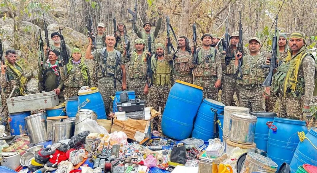नारायणपुर। छत्तीसगढ़ के नारायणपुर जिले के अबूझमाड़ क्षेत्र में चलाए जा रहे नक्सल विरोधी अभियान के तहत सुरक्षा बलों द्वारा एक संयुक्त सर्च ऑपरेशन के दौरान नक्सलियों की डंप सामग्री बरामद की गई है। नारायणपुर पुलिस की जिला रिजर्व गार्ड (डीआरजी) और आईटीबीपी की संयुक्त टीम द्वारा ग्राम मडोड़ा से भोटोर के बीच सर्च ऑपरेशन संचालित किया गया। अभियान के दौरान ग्राम भोटोर के समीप जंगल क्षेत्र में नक्सलियों द्वारा छिपाकर रखी गई सामग्री का पता चला। सुरक्षा बलों द्वारा की गई तलाशी के दौरान विस्फोटक सामग्री, डेटोनेटर, कुछ आईईडी, बड़े ड्रम, राशन सामग्री तथा अन्य दैनिक उपयोग के सामान बरामद किए गए। बरामद सामग्री को सुरक्षा बलों ने अपने कब्जे में लेकर आगे की वैधानिक कार्रवाई शुरू कर दी है। सुरक्षा एजेंसियों के अनुसार, क्षेत्र में नक्सल गतिविधियों पर निगरानी बनाए रखने के लिए अभियान जारी है।
