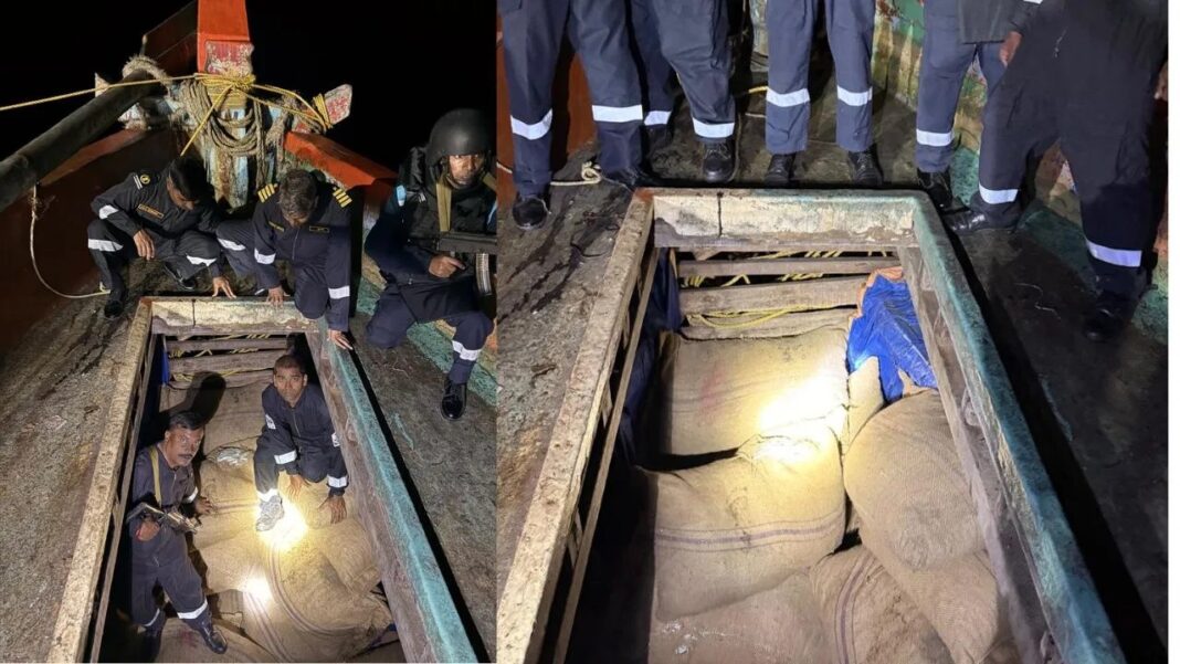 भारतीय तटरक्षक बल ने 2600 किलो सुपारी तस्करी पर लगाई रोक, नाव जब्त
