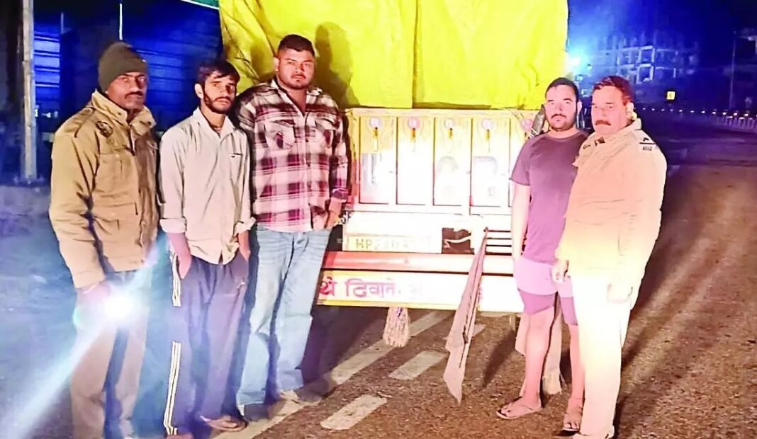 सुंदरनगर। हिमाचल प्रदेश के थाना सुंदरनगर की टीम ने 10 दिनों में दो बड़ी अवैध शराब की खेप पकड़ते हुए अवैध शराब का कारोबार करने वाले लोगों पर जोरदार प्रहार किया गया। ताजा मामले में पुलिस थाना सुंदरनगर की टीम एएसआई दौलत राम की अगुवाई में मुख्य आरक्षी मनोज कुमार, रमेश कुमार आरक्षी और विजय कुमार चालक के साथ सोमवार देर रात को सुंदरनगर के कीरतपुर-नेरचौक फोरलेन पर पुंघ में नाकाबंदी करते हुए हर आने जाने वाले वाहनों की जांच कर रही थी। इसी दौरान बिलासपुर से मंडी की तरफ जा रही एक पिकअप गाड़ी को जांच के लिए रोका। जांच के दौरान गाड़ी से 90 पेटी देसी संतरा मार्का शराब बरामद हुई,जिसको लेकर पिकअप चालक कोई संतोषजनक उत्तर नहीं दे सका और कोई परमिट भी नहीं पेश कर पाया। पुलिस ने पिकअप चालक शुभम शर्मा निवासी प्लासला डाकघर कपहड़ा तहसील घुमारवीं जिला बिलासपुर के विरुद्ध आबकारी अधिनियम के तहत मामला दर्ज कर जांच शुरू कर दी है। गौरतलब रहे कि सुंदरनगर पुलिस थाना के एएसआई दौलत राम द्वारा अपनी टीम के साथ 10 दिन पूर्व इसी जगह पर रात को नाकाबंदी करते हुए ट्रक से 170 पेटी शराब बरामद की थी।